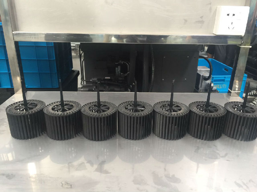 本次试机过程是顺威(泰国)有限公司所有员工第一次观看贯流风叶注塑成型生产过程,大家都表现出极高的兴趣,有的研究注塑机,有的研究产品,甚至有泰国员工拿出纸笔记下注塑机界面上各种语言之间互相转换的步骤。